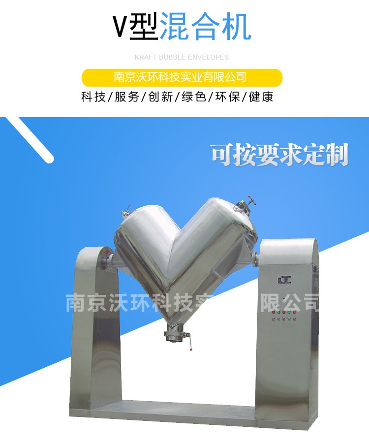 產(chǎn)品概述: 本機(jī)適用于制藥、化工、食品的干粉狀、顆粒裝物料的混合。該機(jī)混料筒結(jié)構(gòu)獨(dú)特,混合均勻,效率高,不積料。整機(jī)結(jié)構(gòu)簡(jiǎn)單,操作容易。外表面和物料接觸部分均采用優(yōu)質(zhì)不銹鋼制造,造型美觀,維護(hù)、清洗方便。 應(yīng)用場(chǎng)景: 本機(jī)用于制藥及其它行業(yè)的粉狀或粒狀物料混合之用。本系列混合機(jī)有高效混合型和普通混合型兩種,高效型混合機(jī)主要對(duì)較細(xì)的粉;?qū)δ骋恢髁虾枯^少的物料均能混合均勻;普通型混合機(jī)主要適用于一般物料或產(chǎn)量較大的企業(yè)使用。筒體光滑無(wú)死角、整機(jī)采用不銹鋼材料制作、且外型美觀等特點(diǎn)。 工作原理: 本機(jī)一端裝有電機(jī)與減速機(jī),電機(jī)功率通過(guò)皮帶傳給減速機(jī),減速機(jī)再通過(guò)聯(lián)國(guó)器傳給V型桶。使V型桶連續(xù)運(yùn)轉(zhuǎn),帶動(dòng)桶內(nèi)物料在桶內(nèi)上、下、左、右進(jìn)行混合。 材質(zhì)及結(jié)構(gòu): 1、 混合機(jī)的筒體采用2.5mm304-2B不銹鋼材料制作,外包采用1.2mm304-2B的不銹鋼材料制作,支架采用5#槽鋼。 2、混合的出料閥選用全不銹鋼精加工而成,并在連接處采用定型硅橡膠材料密封,確保機(jī)器在工作時(shí)的密封效果。 3、混合機(jī)的進(jìn)料口采用選進(jìn)的快開結(jié)構(gòu),使用戶在進(jìn)料和清洗時(shí)操作簡(jiǎn)便。 4、混合機(jī)筒體兩側(cè)拼縫處加焊兩塊不銹鋼引板并采用拋光處理,使筒體內(nèi)無(wú)一處死角,確;旌蠙C(jī)在混合、清洗時(shí)能夠達(dá)到理想的效果。 5、混合機(jī)內(nèi)設(shè)有強(qiáng)制攪拌裝置。